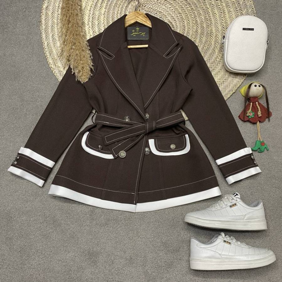 مانتو کتی کمربند دار کد ۱۰۷۶