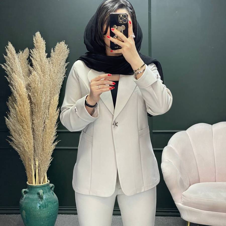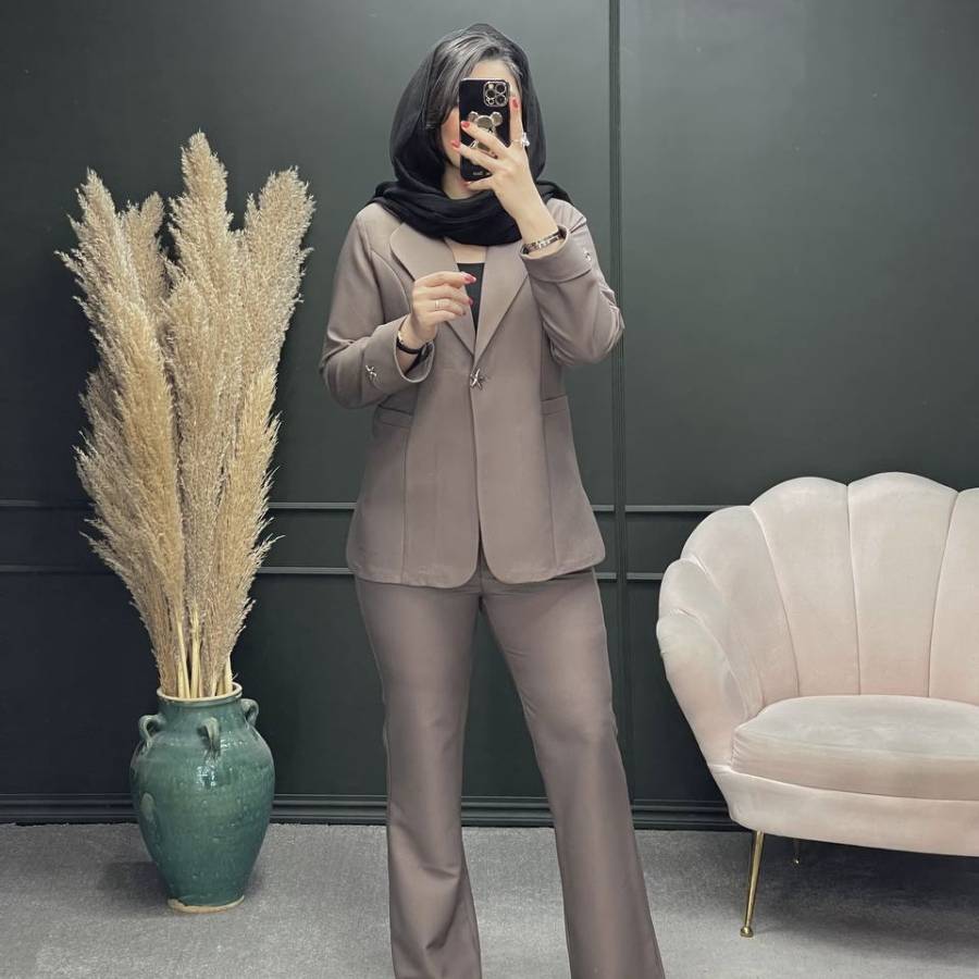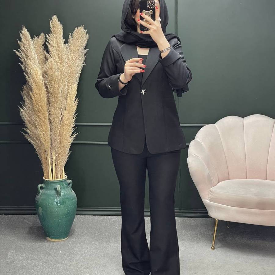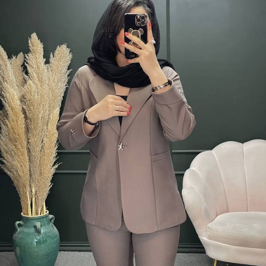 کت و شلوار دکمه ستاره ای جنس پارچه مازراتی کجراه ترک دو سایز مناسب ۳۶ تا ۴۶ قد کت ۷۵ سانت قد شلوار ۱۰۵ سانت